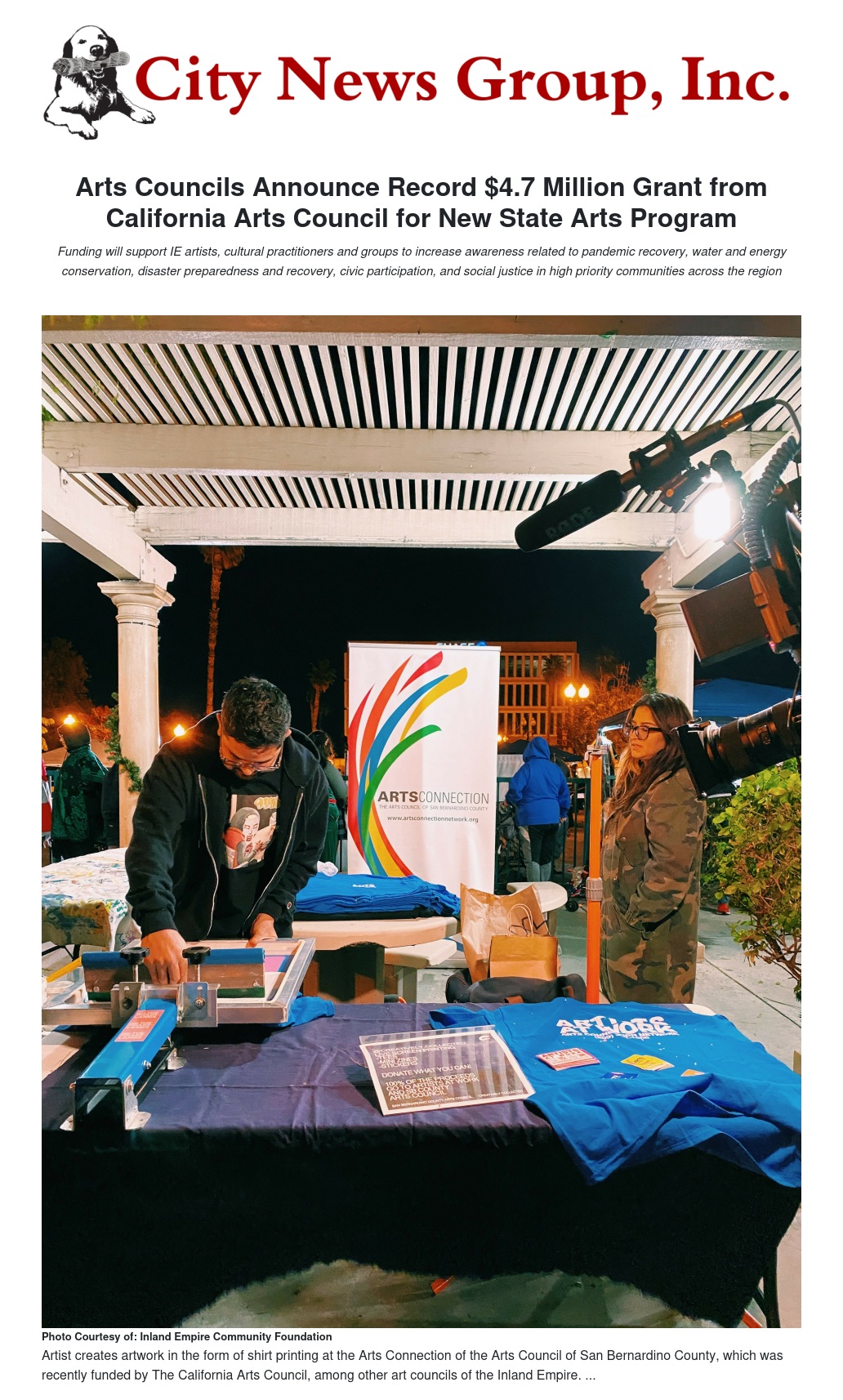 Arts Councils Announce Record $4.7 Million Grant from California Arts Council for New State Arts Program by Anna P. Duff - City News Group, Inc.