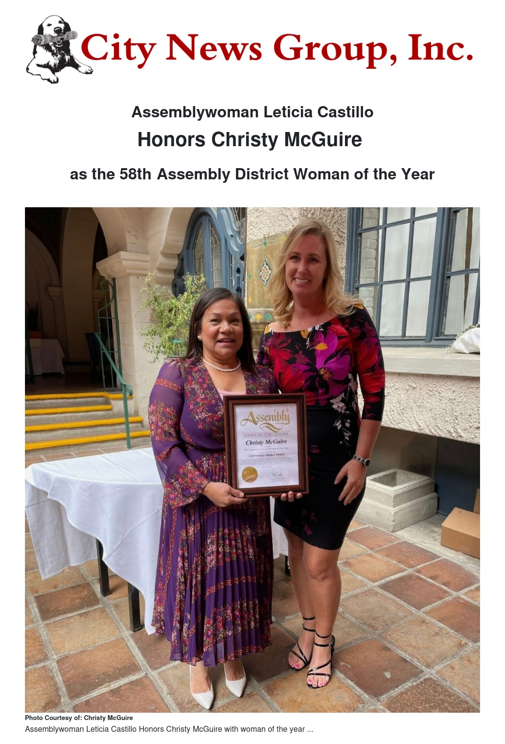Congratulations to Christy McGuire on this well-deserved honor, and thank you for all that you do for the people of Grand Terrace!