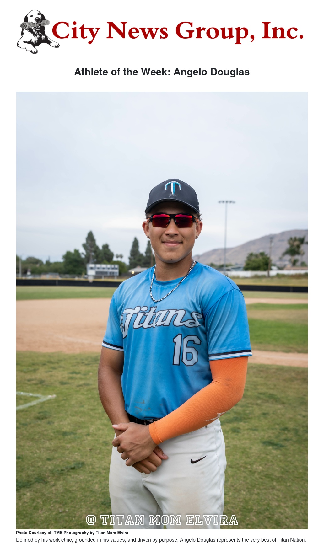 Athlete of the Week: Angelo Douglas by Titan Mom Elvira - City News Group, Inc.