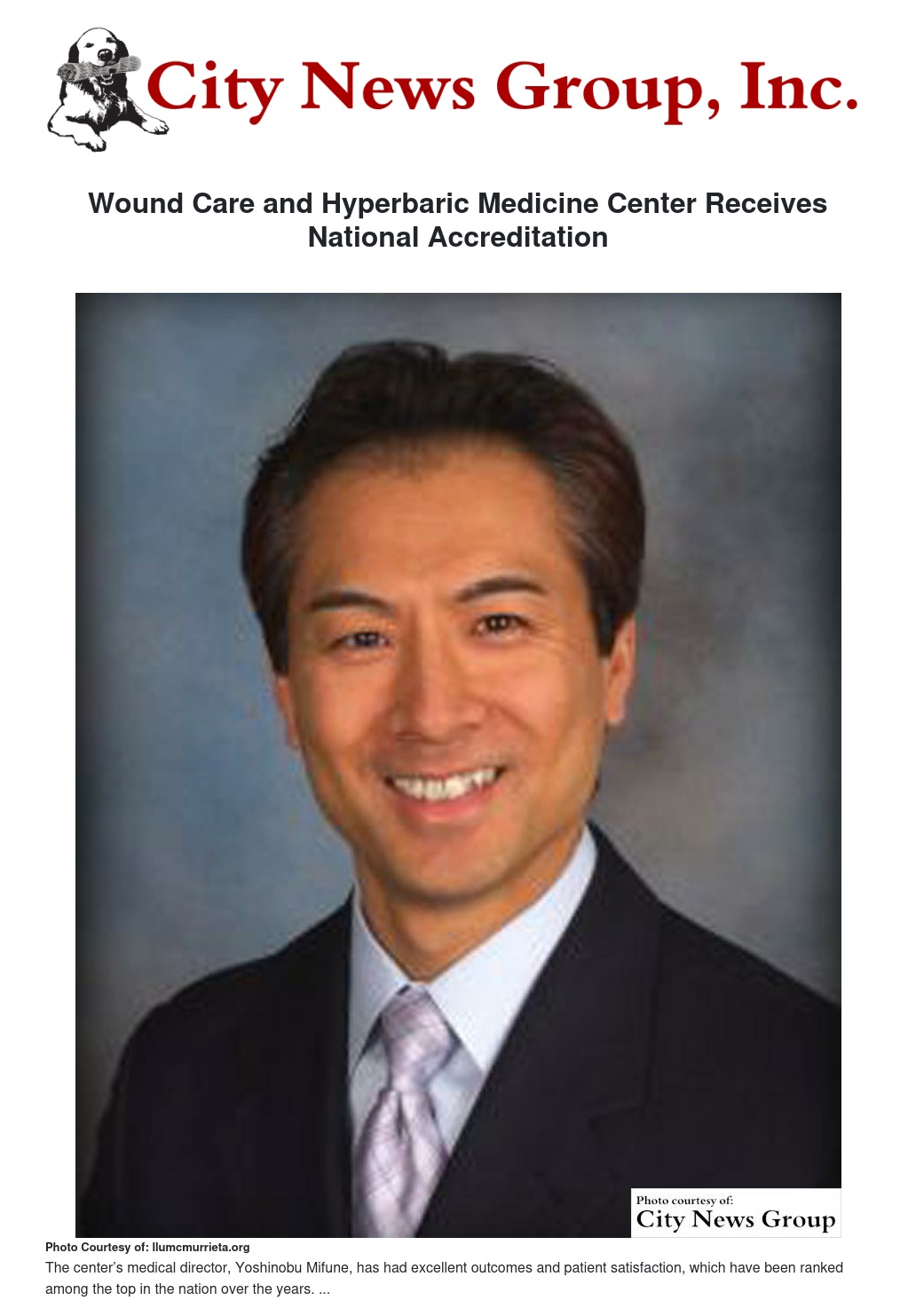 Loma Linda University Medical Center - Murrieta announced that its Wound Care and Hyperbaric Medicine Center received national accreditation with the Undersea and Hyperbaric Medical Society (UHMS), a nonprofit international organization that serves as a primary source of scientific information for divers and hyperbaric medicine physiology.
