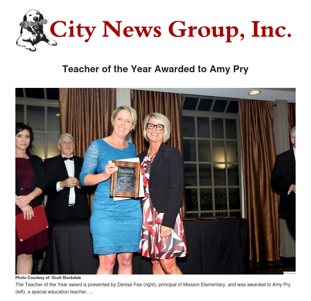 LOMA LINDA>> Amy Pry, a special education teacher at Mission Elementary School who serves kindergarten through fifth grade students, was recently recognized as Teacher of the Year by the Loma Linda Chamber of Commerce.