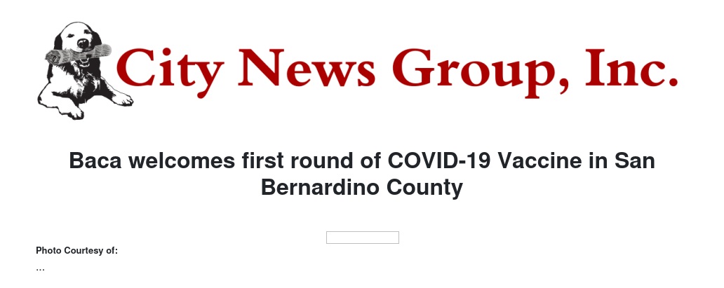 San Bernardino County Fifth District Supervisor Joe Baca Jr., released the following statement after the U.S. Food and Drug Administration (FDA) approved COVID-19 vaccination began at San Bernardino County Arrowhead Medical Center.