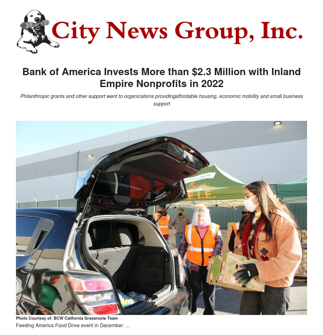 Bank of America Invests More than $2.3 Million with Inland Empire Nonprofits in 2022 by Stacy Schwartz - City News Group, Inc.