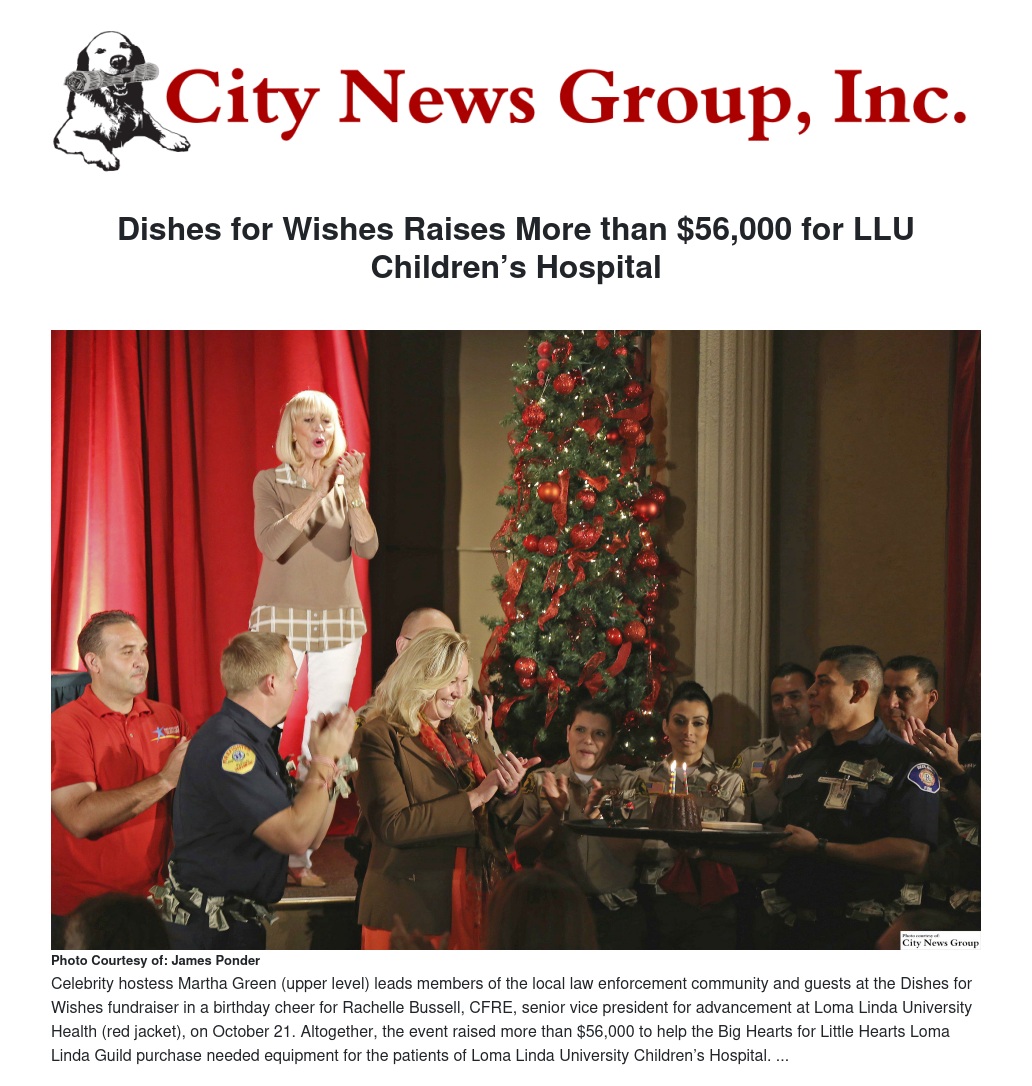 The 2015 installment of Dishes for Wishes, the culinary fundraiser hosted for 16 years by the Big Hearts for Little Hearts Loma Linda Guild, raised more than $56,000 to purchase special equipment for the neonatal intensive care unit (NICU) at Loma Linda University Children’s Hospital (LLUCH). The event was held Wednesday, Oct. 21, in the Renaissance Room at the National Orange Show Events Center in San Bernardino.