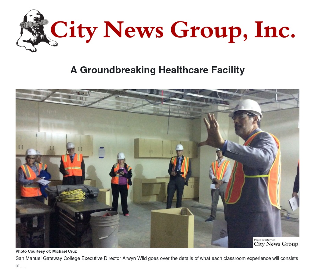 In attendance on the grand tour of the new facility was Richard Hart, MD DrPH, Loma Linda University Health President; Arwyn Wild, San Manuel Gateway College Executive Director; Congressman Pete Aguilar; Enrique Armenta, Staff to Congressman Aguilar; Honorable Patrick Morris, City of San Bernardino former Mayor; Dale Marsden, San Bernardino City Unified School District Superintendent; and Greg Devereaux, San Bernardino County Chief Executive Officer.