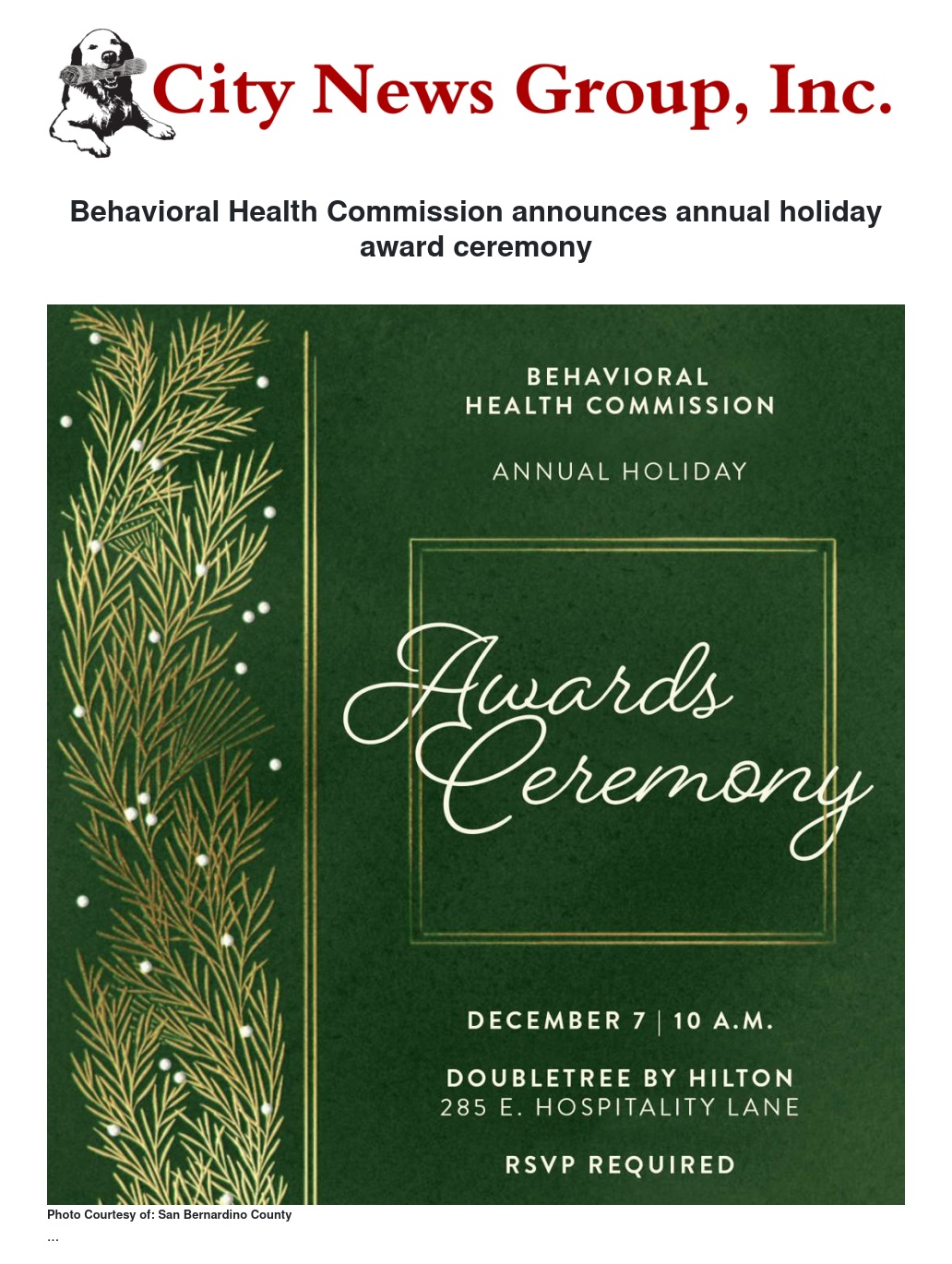 The San Bernardino County Behavioral Health Commission (BHC) is delighted to release the details of the 15th Annual Holiday Awards Ceremony. The event is scheduled to take place on December 7th, running from 10 a.m. to noon, at the DoubleTree by Hilton San Bernardino.