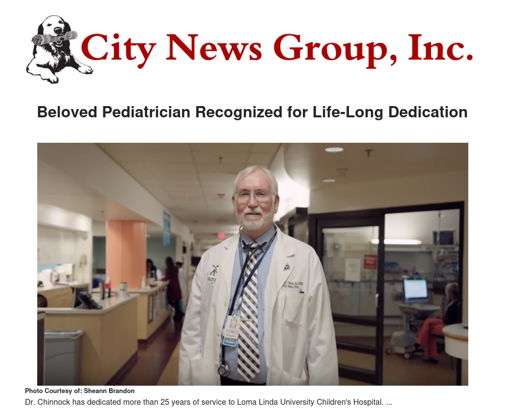 His dedication and commitment to children’s health has shaped Children’s Hospital — what it has become and where it’s going, says Children’s Hospital senior vice president and administrator Scott Perryman. “In Dr. Chinnock’s time at Loma Linda University Children’s Hospital, we’ve gone from having children’s services to a comprehensive network for children’s health,” he says. “He’s truly one of the main founders of children’s health, and our gratitude for the legacy of leaders from the Chinnock family cannot be overstated. Dr. Chinnock’s deep commitment to children’s health and our patients and families we serve every day is an inspiration to all.”