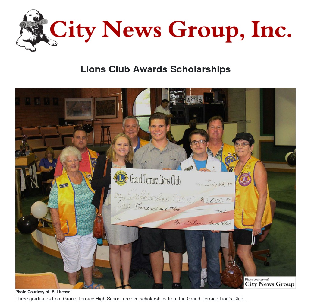 GRAND TERRACE>> Three members of the Grand Terrace Lion’s Club received scholarships presented to them during a July 26 city council meeting.