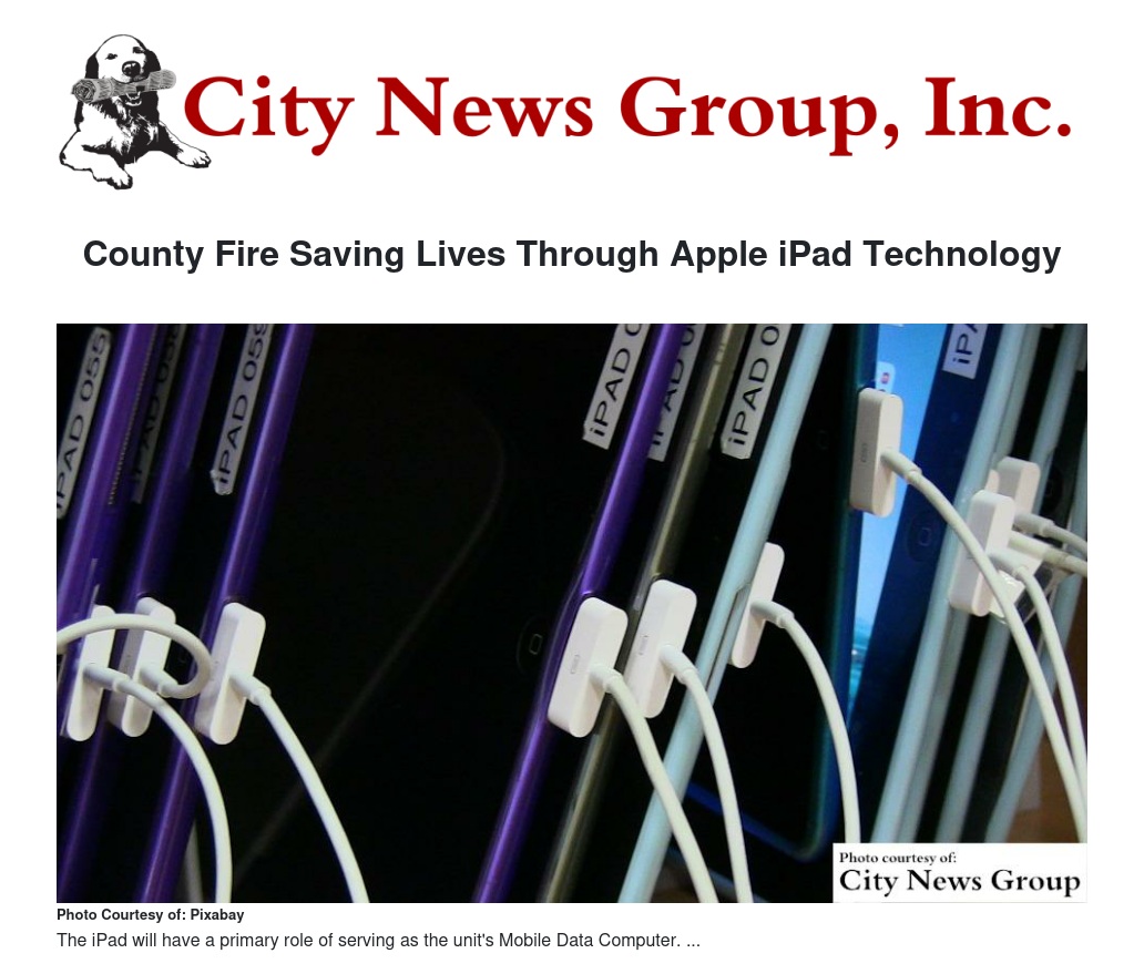 iPad technology in the fire service became a trend in the Bay Area after the 2010 gas line explosion in San Bruno, a suburb of San Francisco. In the after action review, it was noted that the public was gaining more information than the first responders during the height of the incident. This massive response included dozens of fire apparatus and hundreds of personnel. The fireground is a dynamic and dangerous environment. It is imperative that we know who is doing what, when and where as they are critical components to mitigating the incident. These advancements in technology will greatly improve the way County Fire operates as well as allow us to deliver a safer, more efficient service to the public. The future plan is to install iPads in all of County Fire’s apparatus.
