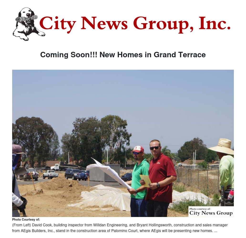 Future residents of Grand Terrace will have an opportunity to settle down in a brand new community developed by AEgis Builders, Inc. with homes on Palomino Court in the city of Grand Terrace.