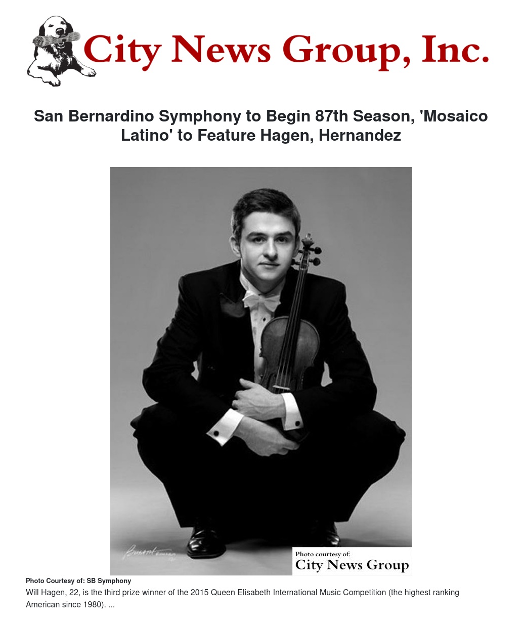 San Bernardino Symphony to Begin 87th Season, 'Mosaico Latino' to Feature Hagen, Hernandez
