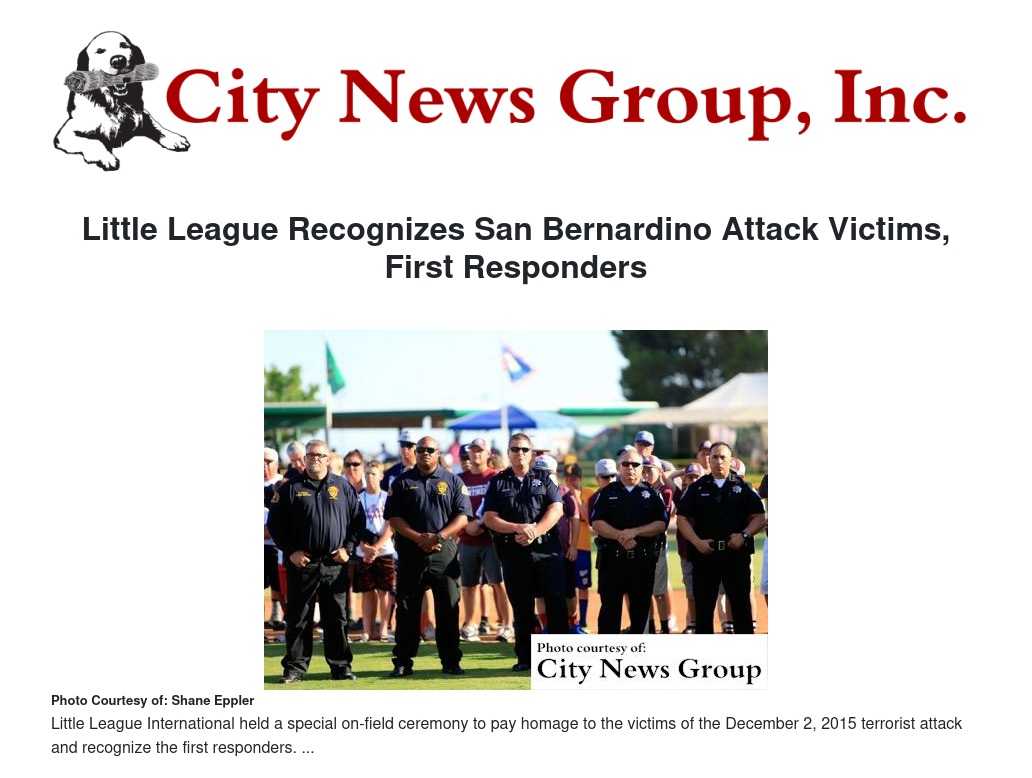 “For nearly 45 years, the wonderful community of San Bernardino has been the western home for Little League Baseball and Softball and our hearts sank when we learned of the tragic events that unfolded last December,” said Stephen D. Keener, Little League President and CEO. “As we celebrate the achievements of our Little League Baseball players at our Western Regional Tournament this year, Little League Baseball also wants take the opportunity to recognize the lives lost on that sad day and thank those first responders for their dedicated service.”