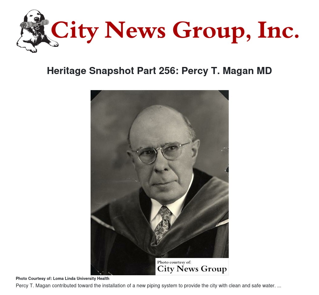 LOMA LINDA>> In the early days, The Loma Linda College of Medical Evangelists (CME) found that a serious emergency could motivate giving by people, including students, their friends and family, and faculty. It also involved Percy T. Magan, MD, the namesake of Magan Hall, the administration building at Loma Linda University.