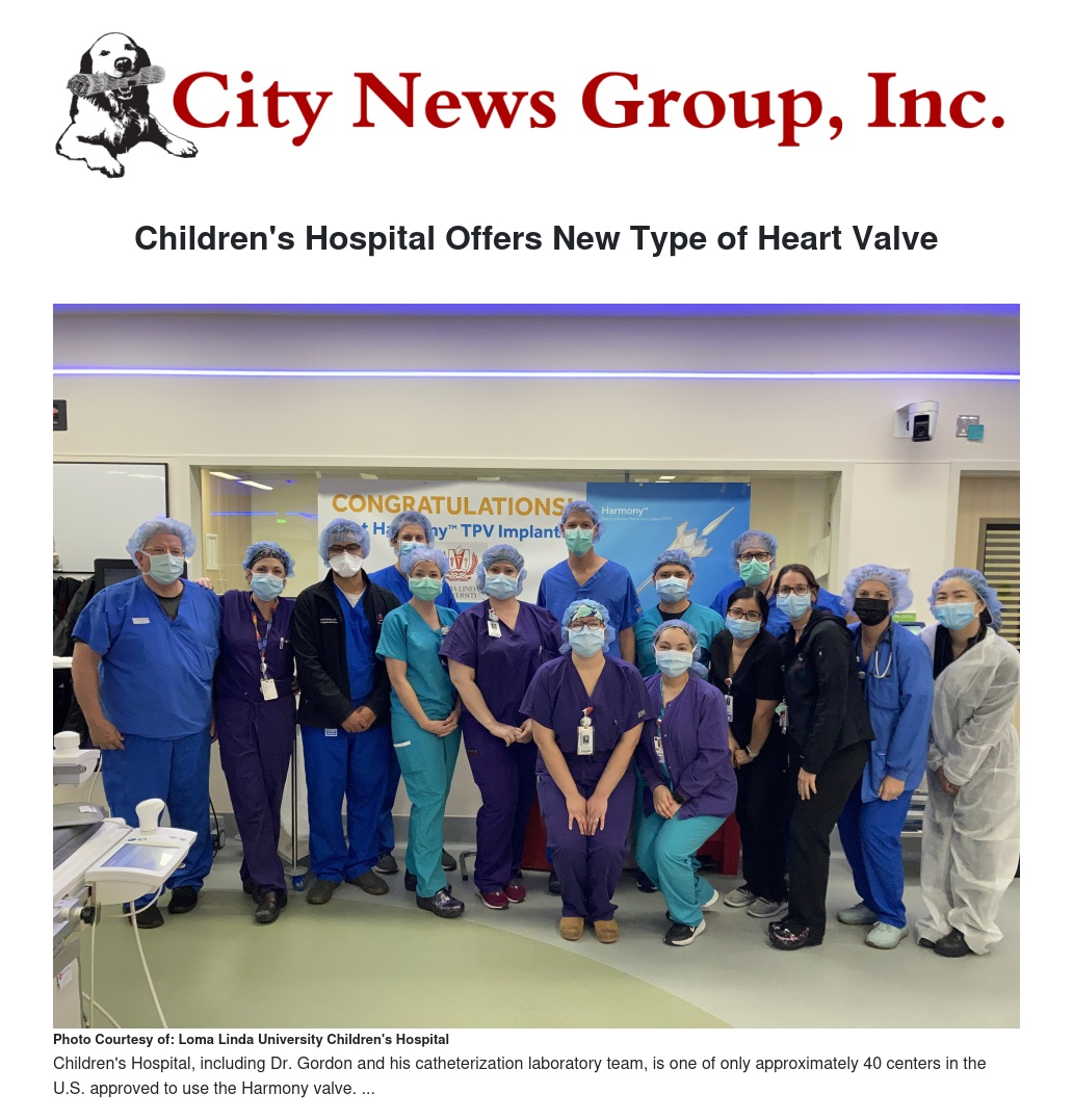 Loma Linda University Children’s Hospital recently inserted its first Harmony transcatheter pulmonary valve, which fixes a poorly functioning heart valve through a minimally invasive procedure, allowing children and adult patients living with congenital heart disease to go longer without the need for open-heart surgery.