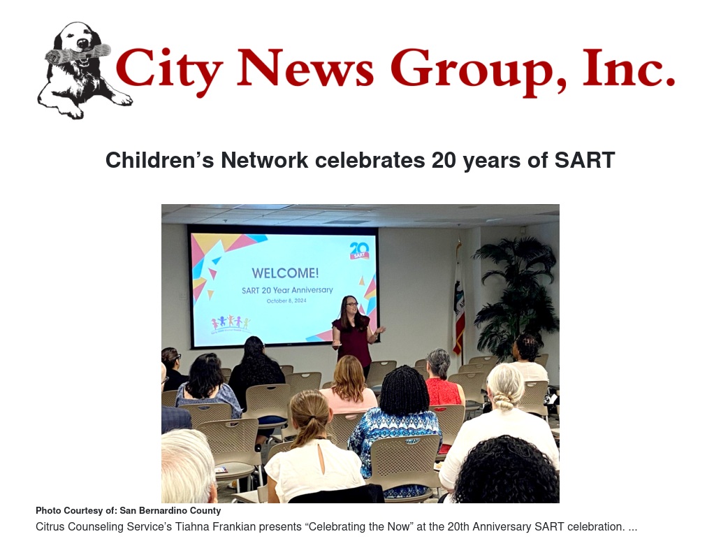 San Bernardino County’s Children’s Network celebrated the 20th Anniversary of the Screening, Assessment, Referral and Treatment (SART) program on Oct. 8 at First 5 San Bernardino.