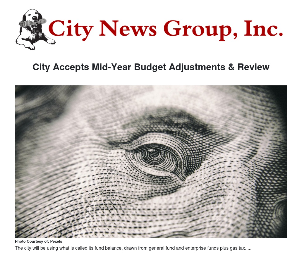 At the beginning of the year, the city anticipated $19,514,600 in revenue into its general fund. At mid-year, it anticipates a net increase of $839,800 of revenue into the general fund, such that the city now anticipates $20,363,900 into the general fund, after further adjustments. The city further anticipates at this point a net increase in general fund expenditures of 410,700 from what was passed by the council in June.