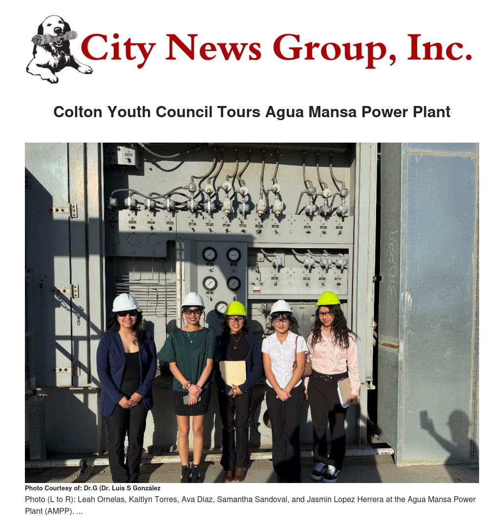 Colton Youth Council Tours Agua Mansa Power Plant by Dr.G (Dr. Luis S González) - City News Group, Inc.