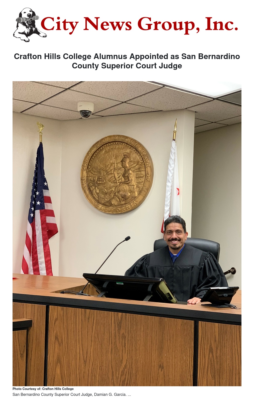 Crafton Hills College Alumnus Appointed as San Bernardino County Superior Court Judge by Michelle Riggs - City News Group, Inc.