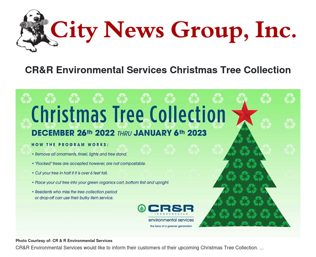 CR&R Environmental Services would like to inform all customers of our upcoming Christmas Tree Collection.