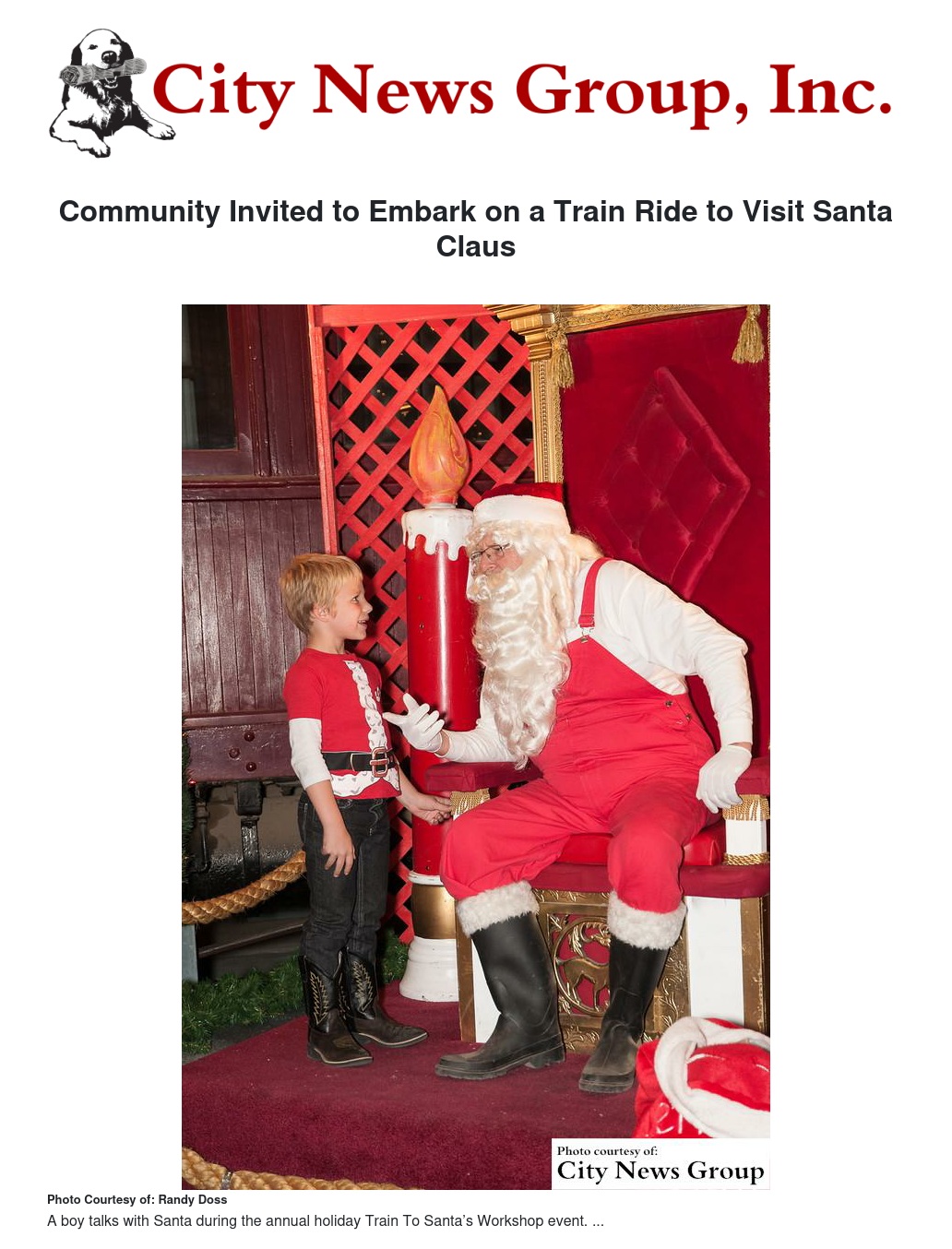 Community Invited to Embark on a Train Ride to Visit Santa Claus