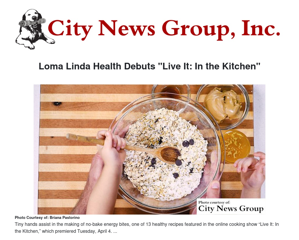 LOMA LINDA>> On Tuesday, April 4, Loma Linda University Health debuted "Live It: In the Kitchen," a cooking show of 13 short episodes that aim to inspire those at home to cook and eat healthy.