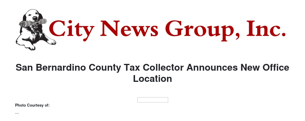 San Bernardino County Auditor-Controller/Treasurer/Tax Collector Larry Walker announces that effective Sept. 28, the Treasurer and Tax Collector Divisions of his department will be moving their office less than four miles away to a new location at 268 West Hospitality Lane.