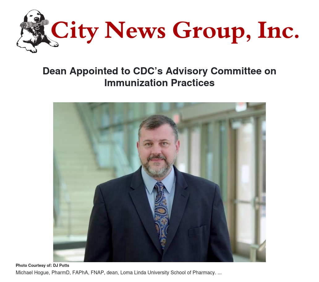 Loma Linda University School of Pharmacy dean Michael Hogue, PharmD, FAPhA, FNAP, has been selected by the American Pharmacists Association (APhA) as its liaison representative to the Centers for Disease Control and Infection (CDC) Advisory Committee on Immunization Practices (ACIP).