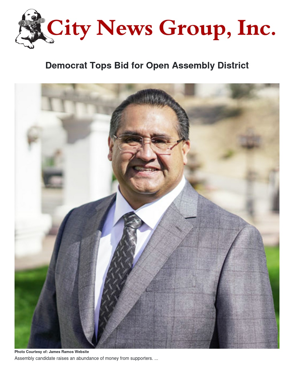 San Bernardino County Supervisor James Ramos has started his campaign with a bang by picking up key local endorsements and showing a first campaign report that reinforces the strength of his Assembly campaign.