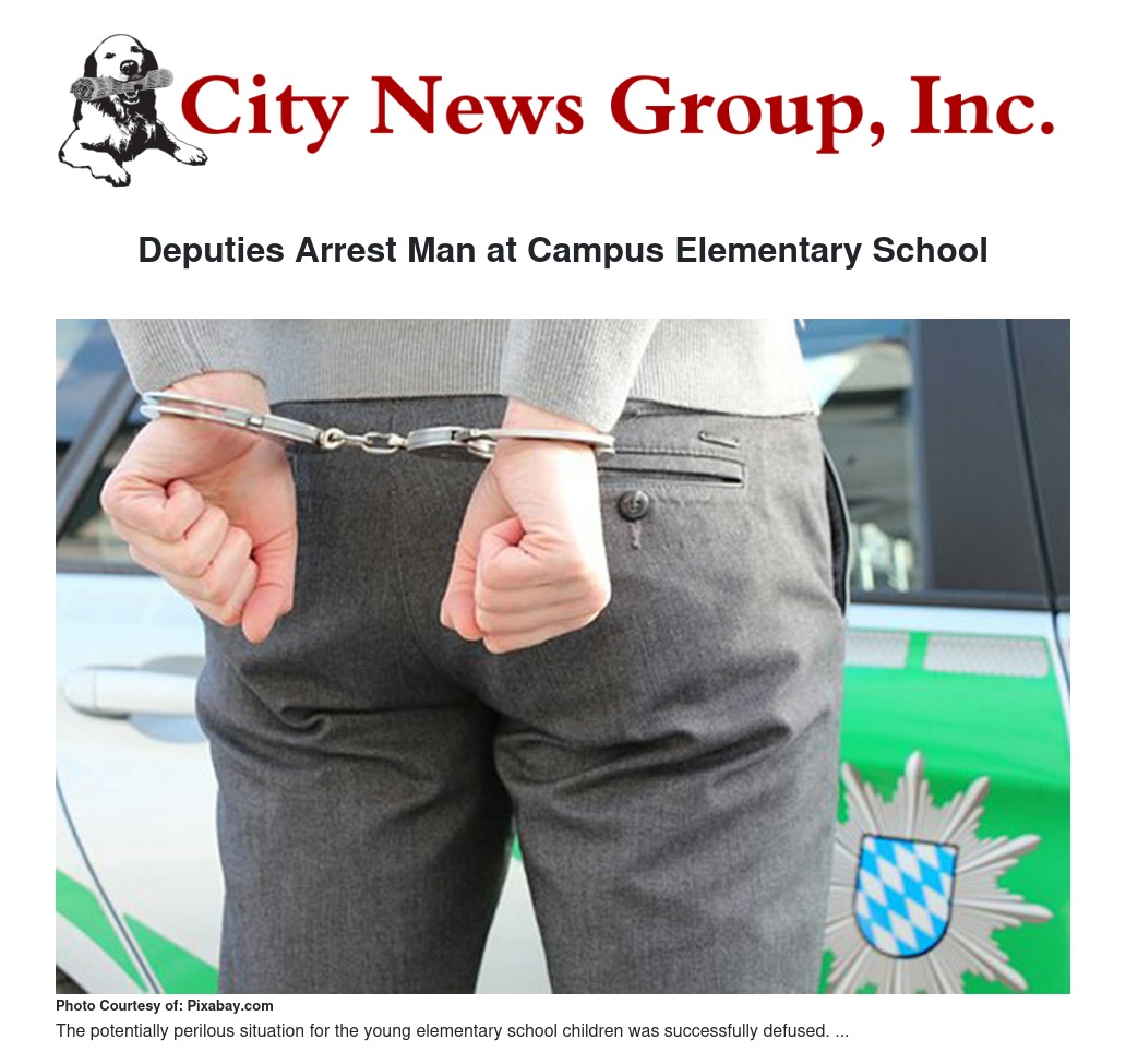 On Tuesday, October 22, 2019, at approximately 1215 P.M., Loma Linda Academy Elementary School staff contacted Alonso Garcia after he entered school grounds during recess without authorization. He was escorted to the administration office and deputies responded and conducted an investigation. Deputies arrested Garcia for being under the influence of a controlled substance and trespassing. Garcia did not have any weapons or narcotics on his person. He had no business on campus, no children or family members attending the school, so deputies conducted a safety sweep to ensure the campus was safe.