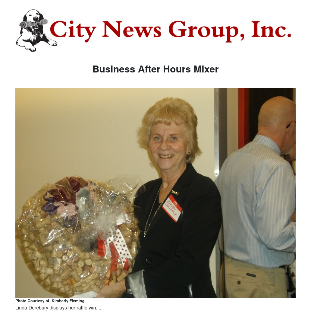 Alan Richard, Chamber of Commerce Treasurer and owner of ISU BARICH Insurance orchestrated the raffle and informed members and those interested about upcoming events. One of the raffle winners was Linda Derebery who received a wreath made of wine corks which was donated by a member.