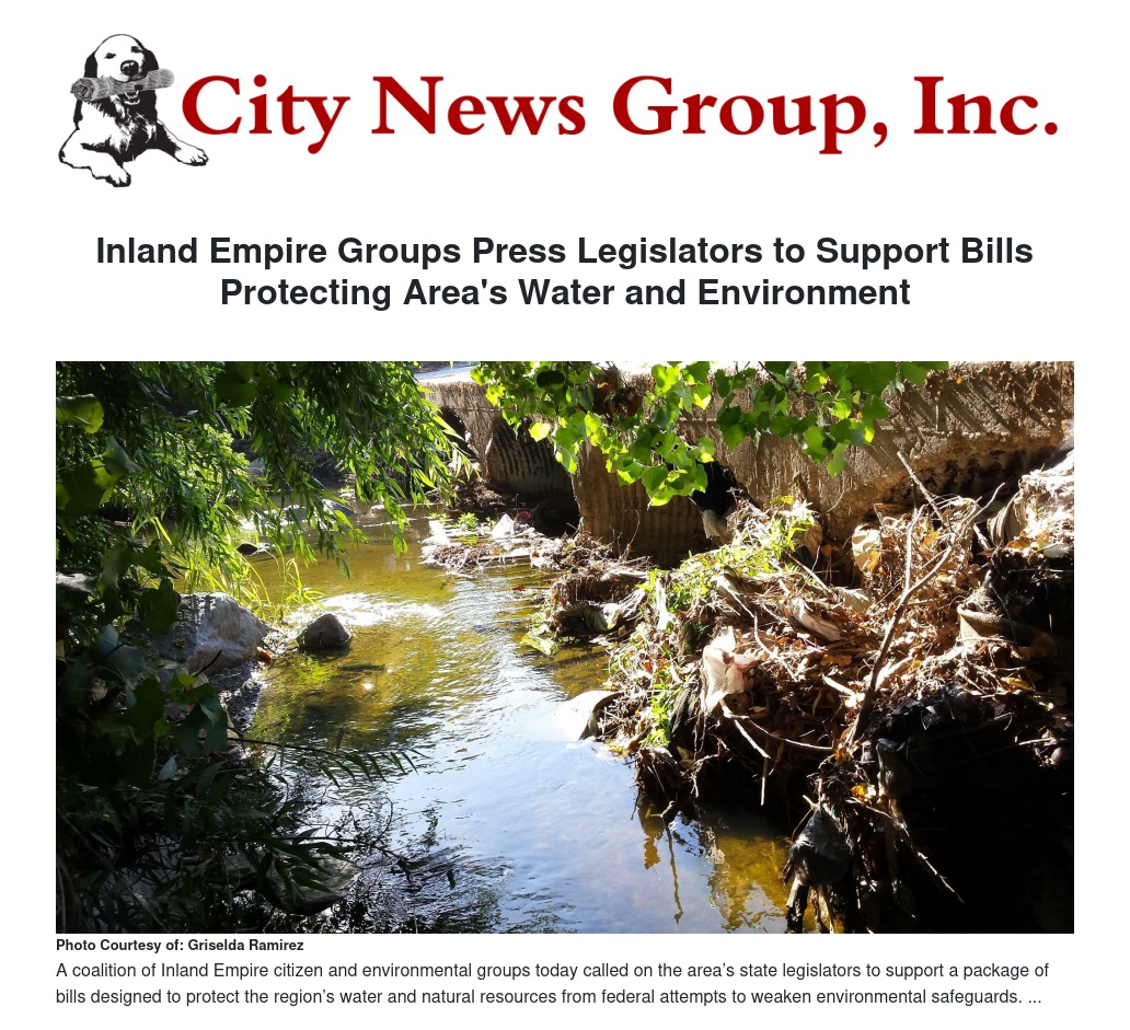 A coalition of Inland Empire citizen and environmental groups today called on the area’s state legislators to support a package of bills designed to protect the region’s water and natural resources from federal attempts to weaken environmental safeguards.