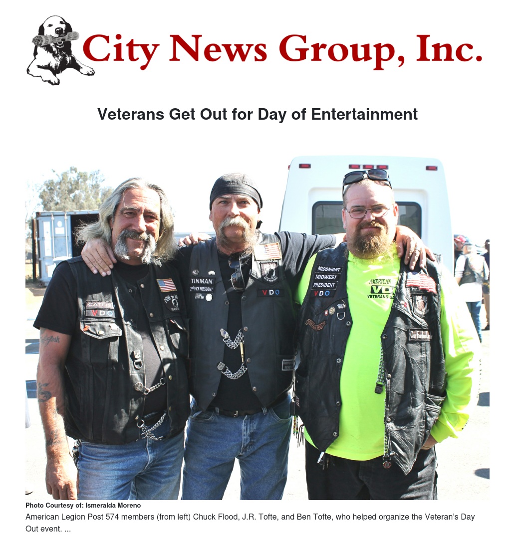 One such event was the Veteran’s Day Out held at Post #574 in Moreno Valley on Oct. 12. This event was organized by J.R. Tofte, nicknamed ‘Tinman’, and Chuck Flood, a.k.a. ‘Catfish’, who acted as a liaison between Post 574 and Tofte’s Post, #848. Both men are members of The American Legion Riders, who escorted the veterans from the Loma Linda VA Hospital Saturday morning to the American Legion Post #574 in Moreno Valley.