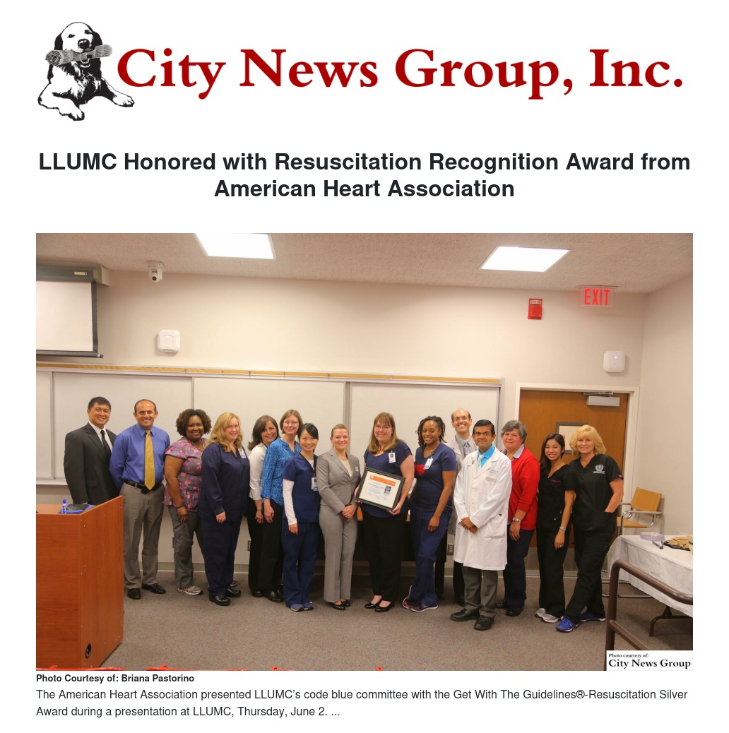LLUMC Honored with Resuscitation Recognition Award from American Heart Association