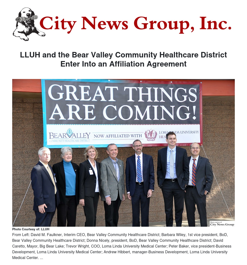 LLUH and the Bear Valley Community Healthcare District Enter Into an Affiliation Agreement