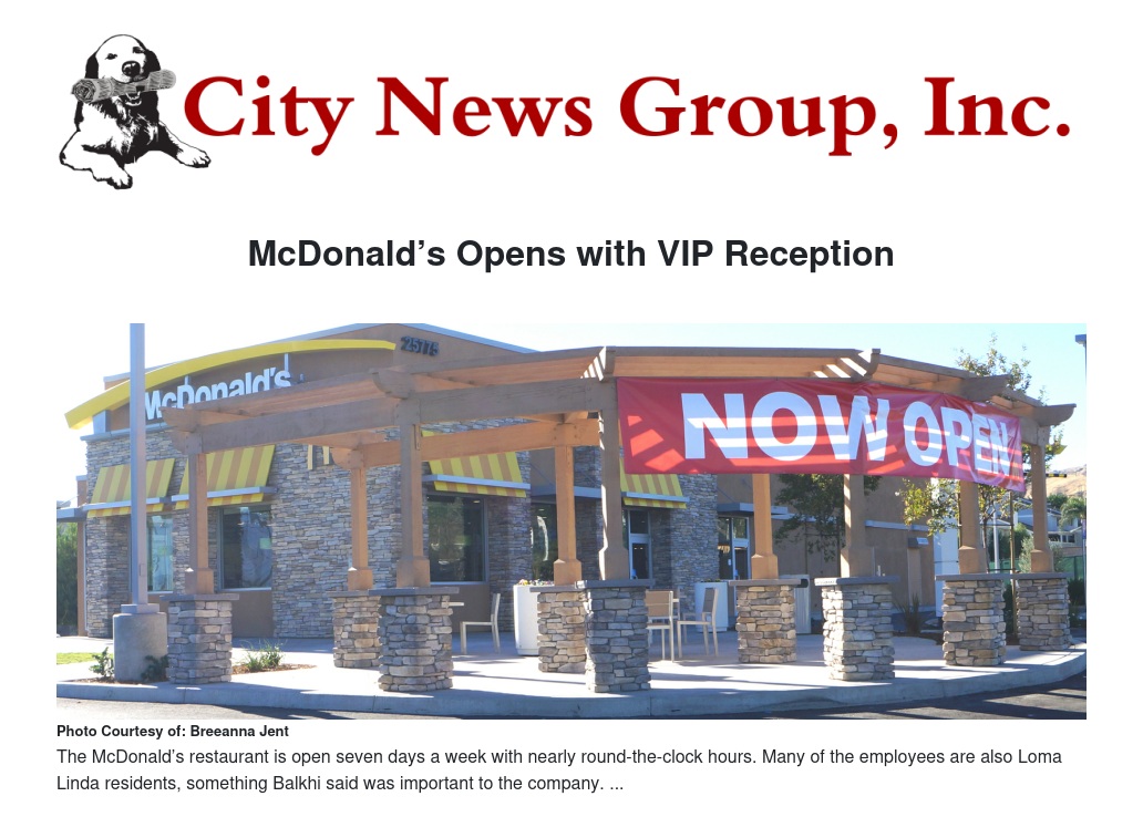 On Sept. 16 Loma Linda’s first McDonald’s restaurant opened its doors to the community.