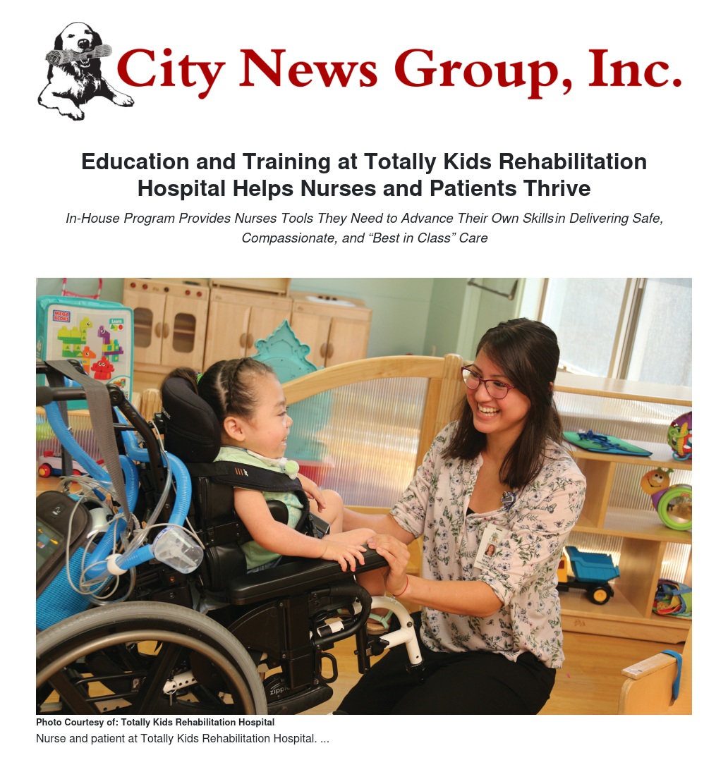 Totally Kids Rehabilitation Hospital announced an in-house education and training program designed to provide nurses the information, tools, support, and assurances they need to bloom in their own careers while helping each patient thrive to the best of their abilities.