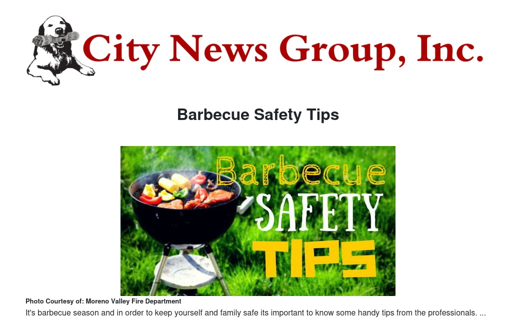 Barbecue Safety Tips by Moreno Valley Fire Dept. - City News Group, Inc.