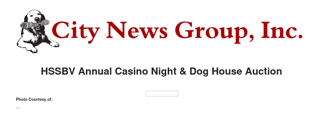 Sponsors for Ante Up for Animals Casino Night and Dog House Auction include Subaru of San Bernardino, Cormac Insurance Services, Gresham, Savage, Nolan & Tilden, Pacific Premier Bank, Patterson Veterinary, Waxie, Alvarenga & Clark, Computer Options, Fairview Ford, State Farm- Jason Reyes, Elanco, Merial, PK Design and SC Printwerks. All proceeds from this event benefit the HSSBV programs and services.
