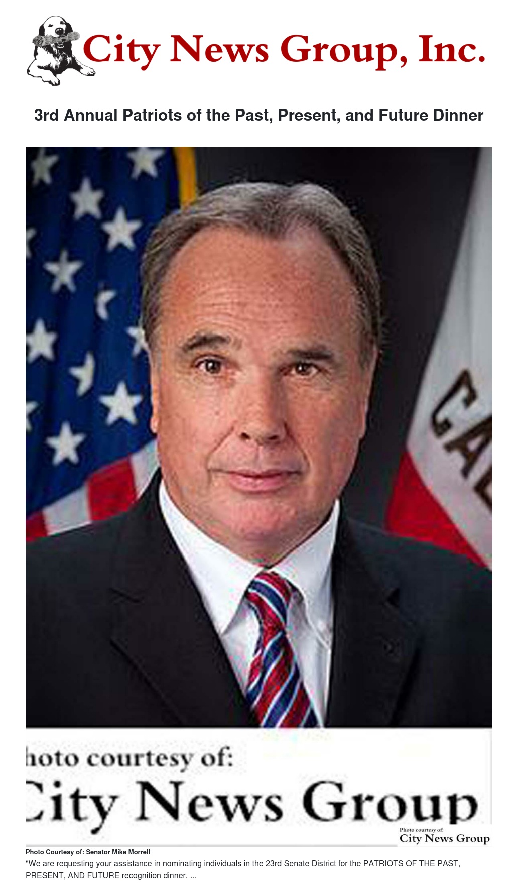 "We are requesting your assistance in nominating individuals in the 23rd Senate District for this recognition. Three finalists will be selected as a “Patriot of the Past or the Present” in each of the following categories: Business, Education, Healthcare, Public Safety, and Community Service. One finalist will be selected for a special recognition as the “Patriot of the Past or Present” from each of these categories,"said State Senator Mike Morrell.