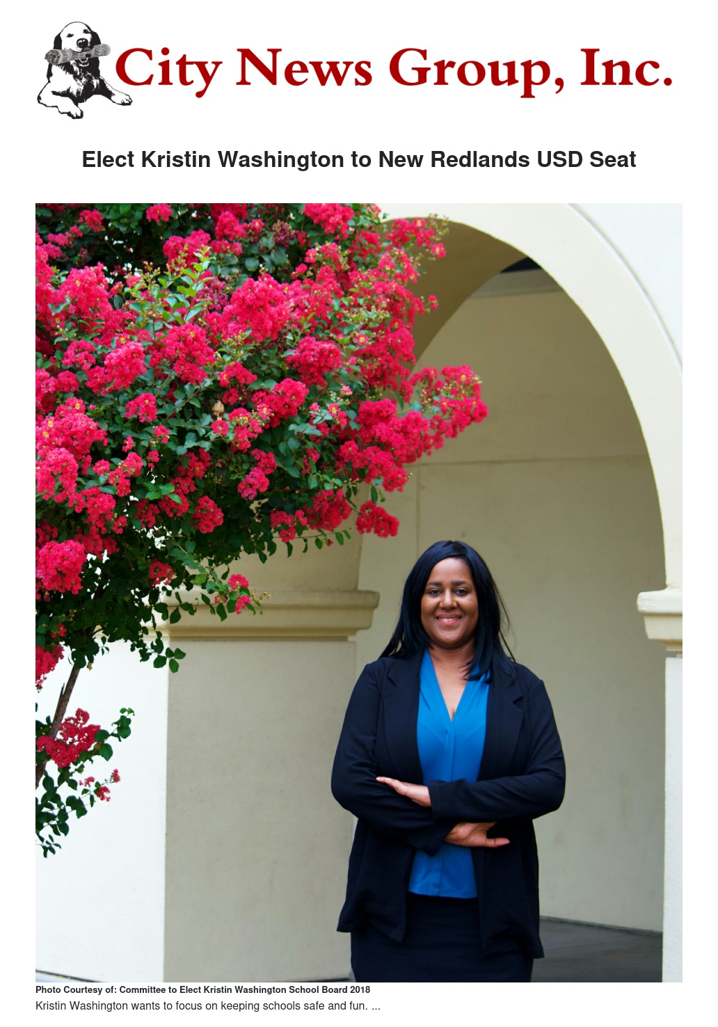 Kristin Washington is the best choice for the Redlands Unified School Board in Area 2. This is a new voting district and it has no incumbent.