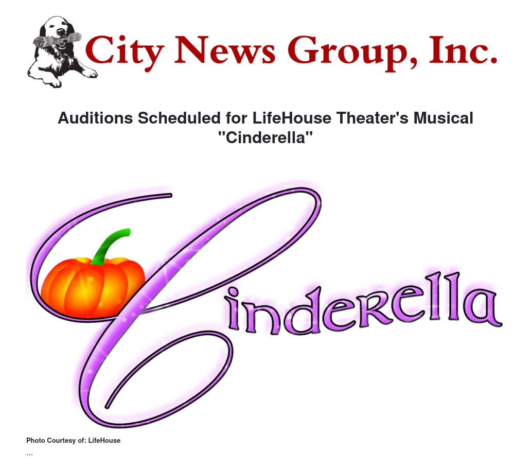 Auditions Scheduled for LifeHouse Theater's Musical "Cinderella"