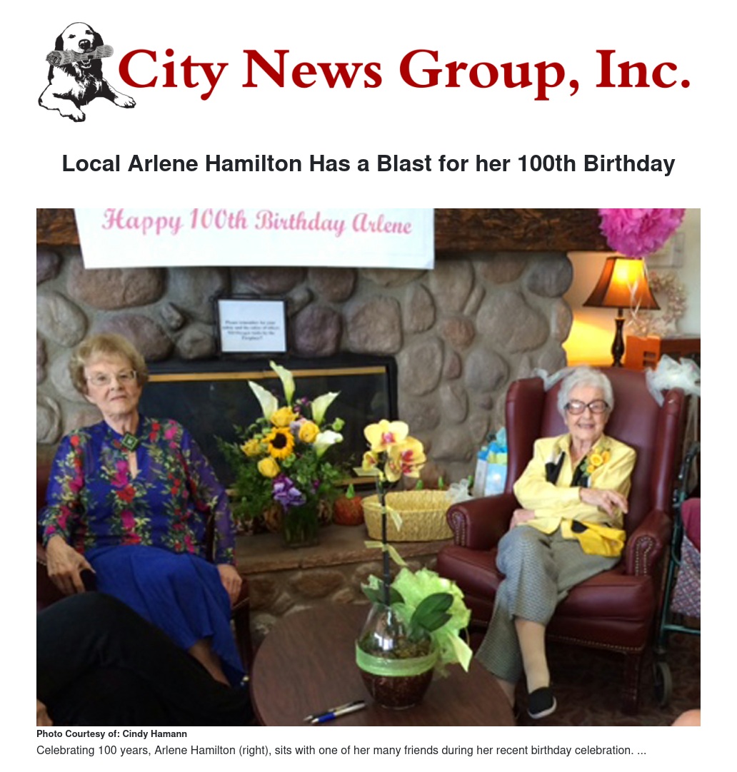 Local senior and Loma Linda Emeritus resident Arlene Hamilton celebrated her 100th birthday Friday, Oct. 3.
