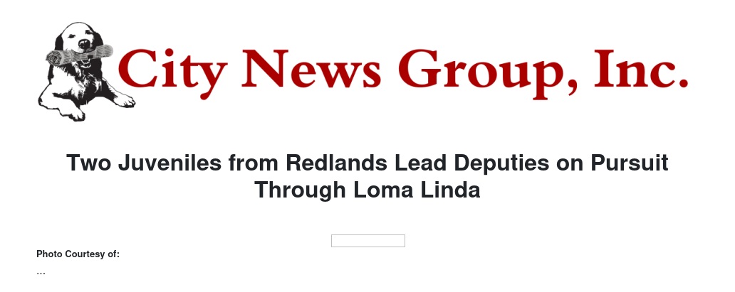 Two Juveniles from Redlands Lead Deputies on Pursuit Through Loma Linda