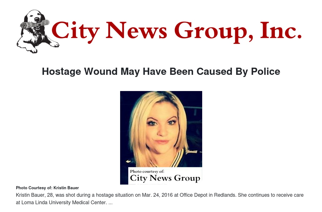 "As you are all aware, last Thursday afternoon, the Redlands Police Department along with officers from agencies including the San Bernardino Police Department, San Bernardino County Sheriff’s Department and others responded to a hostage incident at the Office Depot that ended in the death of the suspect and injury of his hostage and one other person.