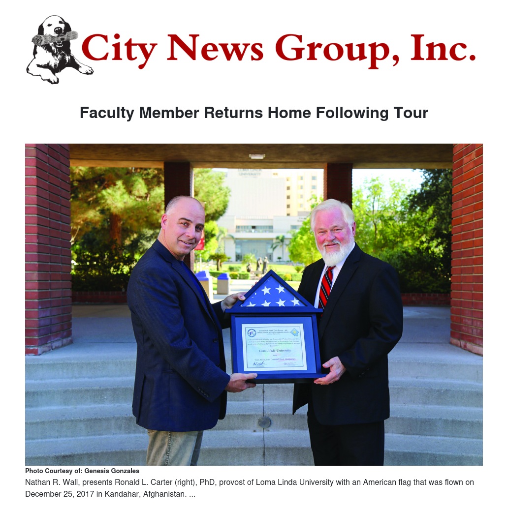 “Our family at Loma Linda University couldn’t be prouder of Dr. Wall and his service to his country,” said Ronald L. Carter, PhD, provost of Loma Linda University. “His patriotism is a wonderful gift and our students and faculty are honored to serve alongside him here.”