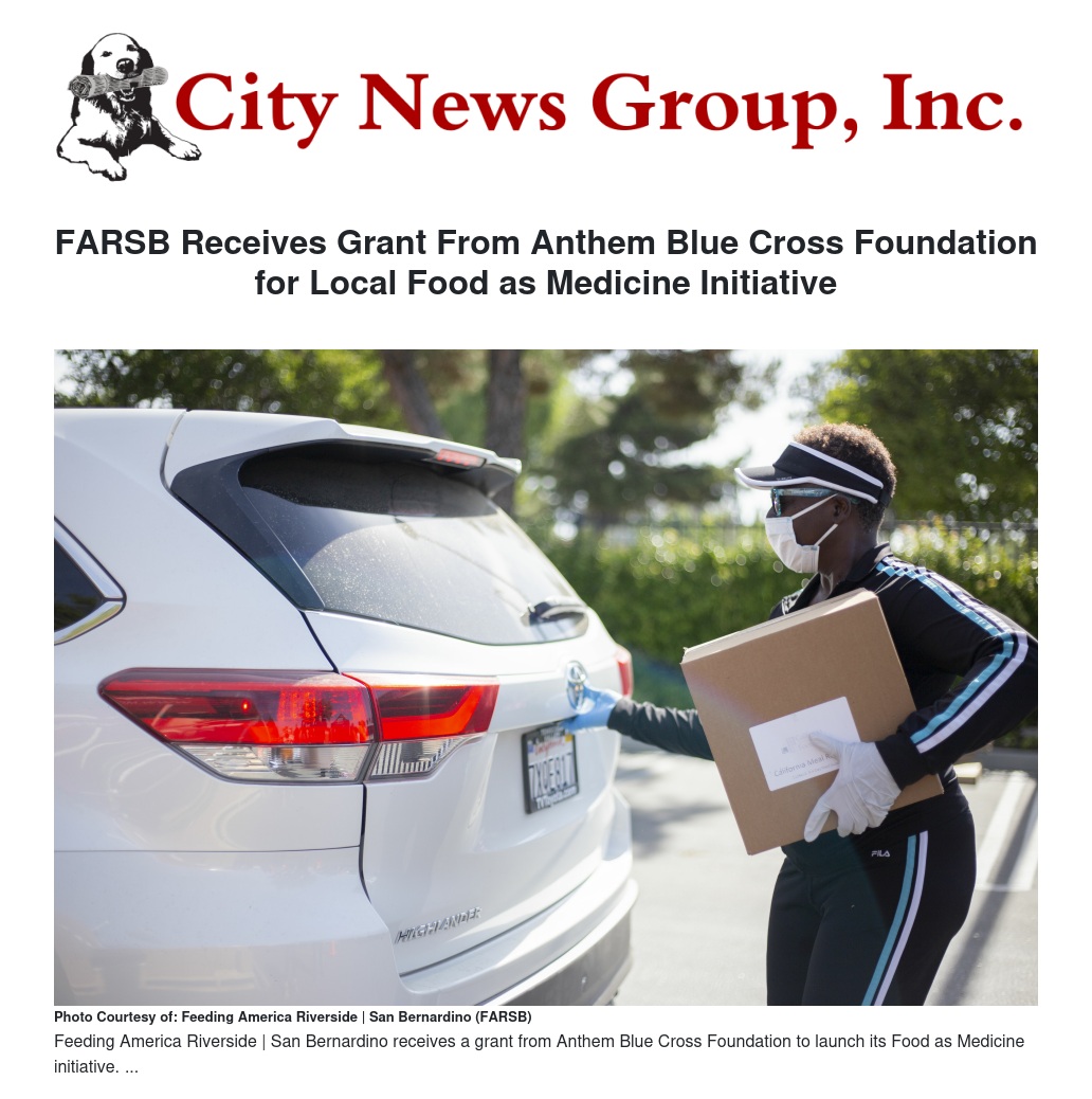 Feeding America Riverside | San Bernardino (FARSB) announced it has received a $250,000 grant from the Anthem Blue Cross Foundation, a philanthropic arm of Elevance Health Foundation, to launch a 3-year ‘Food as Medicine’ initiative in the Inland Empire. The grant will support FARSB as it collaborates with local healthcare providers to screen patients for food insecurity during healthcare visits. The healthcare partners will then connect patients who screen positive for food insecurity to food assistance resources onsite at healthcare facilities, community-based food pantries, and meal programs.