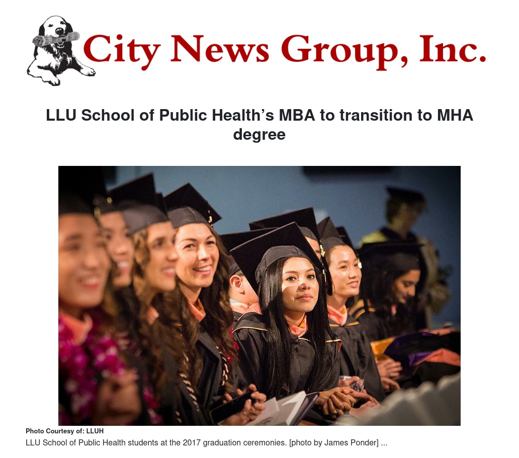 The Loma Linda University School of Public Health recently announced that it will transition its popular master of business administration degree program to a master of healthcare administration degree beginning in the summer of 2018.