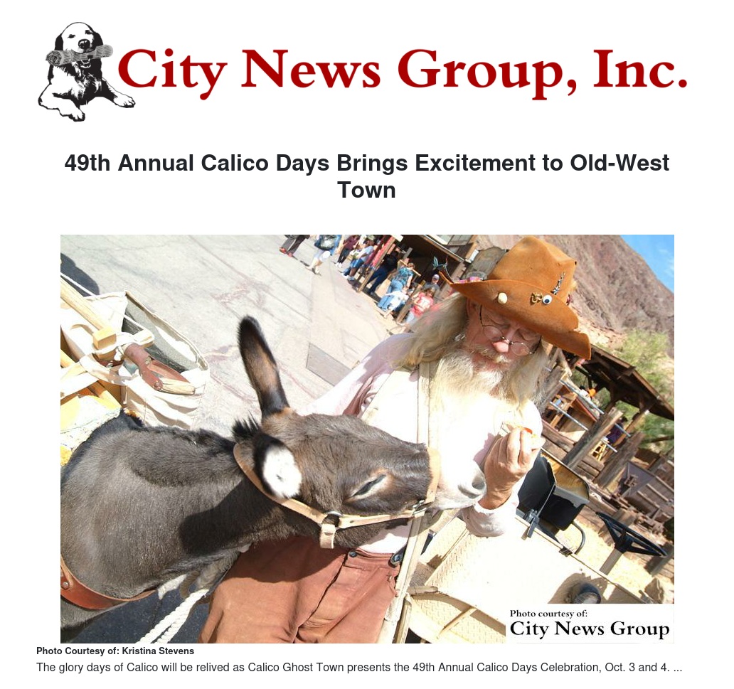 Favorite features of past Calico Days events will also return, including the Old West Character Parade and Costume Contest, The Miner’s Triathlon, old west gunfight shows, and the crowd favorite -- Burro Run.