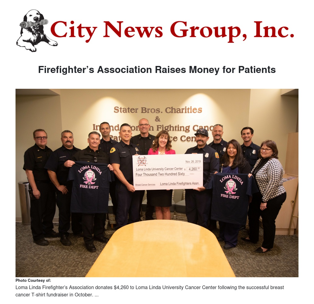 For the month of October, the Loma Linda Firefighter’s Association did more than keep the community safe. It raised more than $4,000 to benefit breast cancer patients at Loma Linda University Cancer Center.