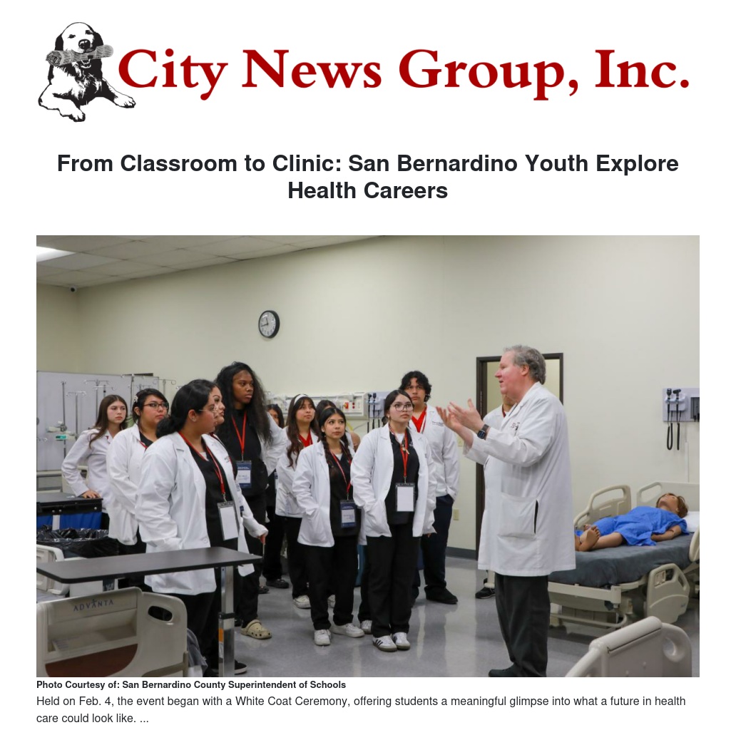 From Classroom to Clinic: San Bernardino Youth Explore Health Careers by Jenny Owen & Victoria Gauci - City News Group, Inc.
